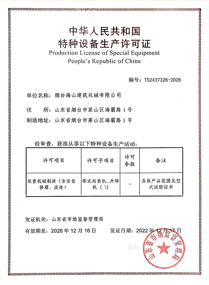 2022年度海山機(jī)械的建筑業(yè)企業(yè)資質(zhì)許可證書(shū),以及特種設(shè)備生產(chǎn)許可證書(shū)均通過(guò)審批,具體如下圖: